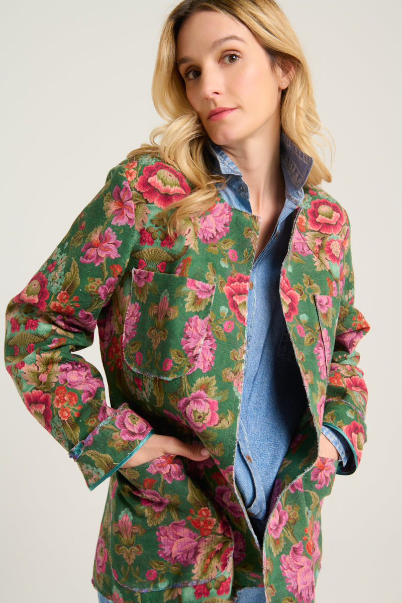 سترة مطرزة بنمط مربعات الجينغهام