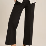 بنطال متوسط الارتفاع بقصة مستقيمة واسعة ومنسدلة قليلاً. أسود اللون، مزود بجيوب جانبية. التركيب: 64% فيسكوز، 31% بولي أميد، 5% إيلاستين. مقاسات إيطالية. صنع في إيطاليا.