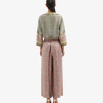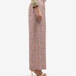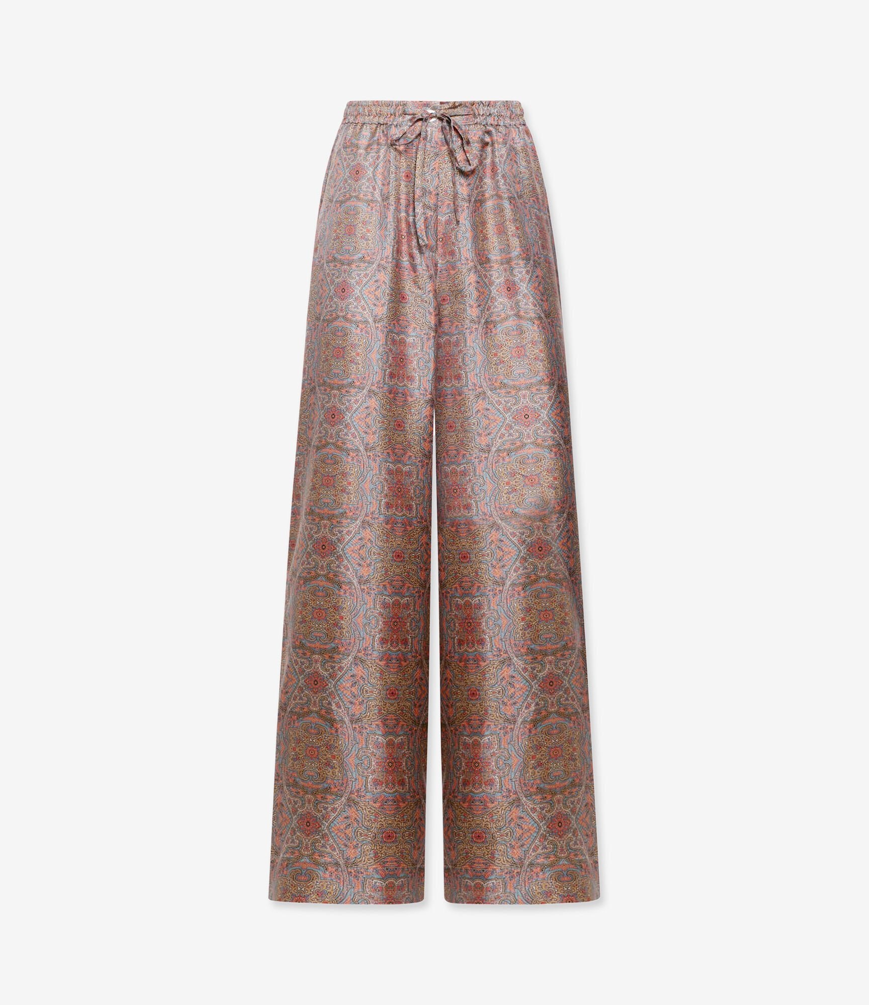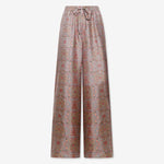 بنطال فضفاض بخصر مطاطي، وساق واسعة، وجيوب جانبية. إغلاق بأزرار ورباط. نقشة بيزلي بألوان البيج والبرتقالي والسلموني والأزرق. الخامة: 100% حرير. صنع في إيطاليا. المقاسات إيطالية.