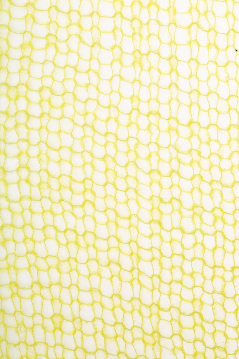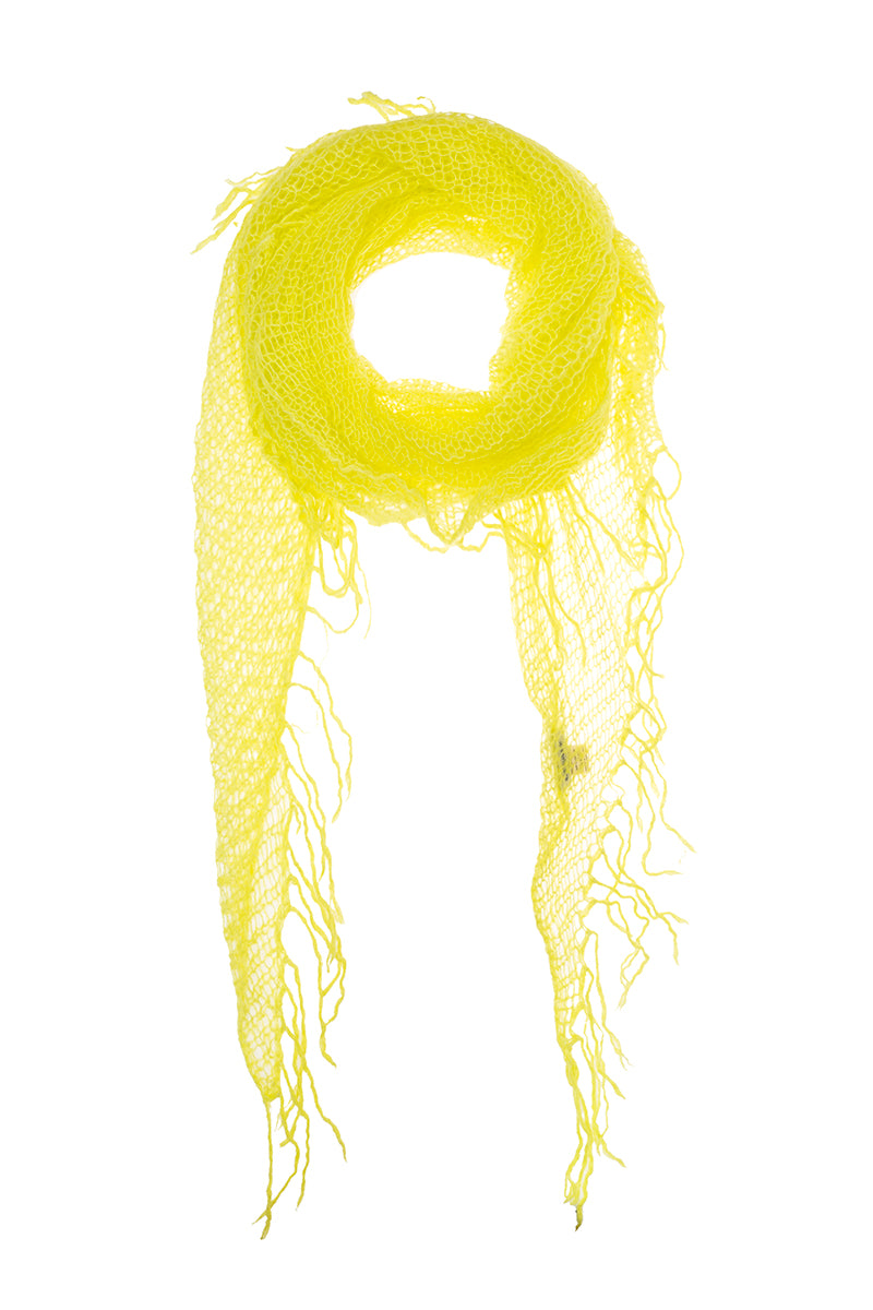 عباءة مثلثة الشكل منسوجة بغرزة شبكية باللون الأخضر الليموني. مزينة بشراشيب. الخامة: 100% كشمير. صناعة يدوية في نيبال.