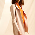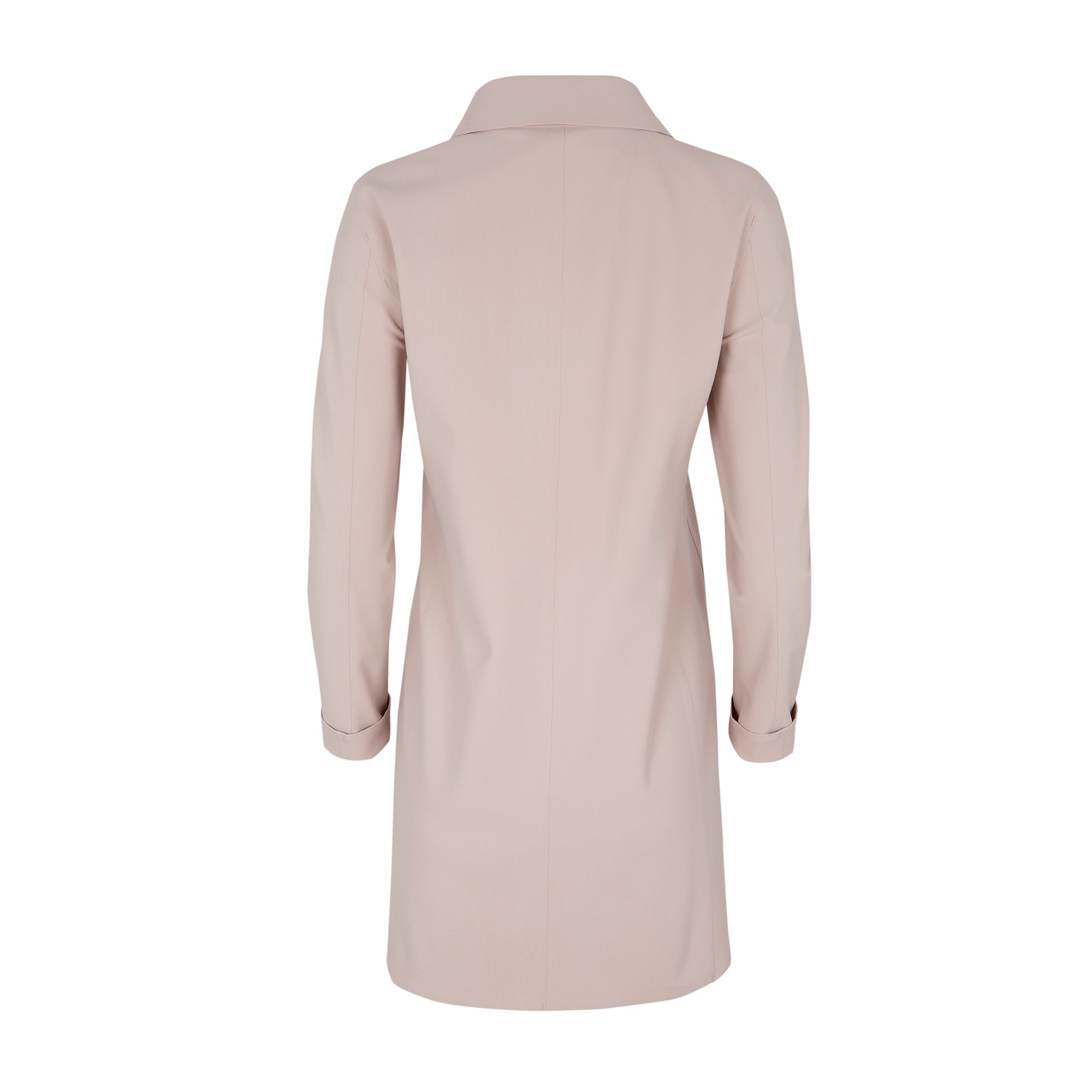 معطف ترنش من النيوبرين بلون رمادي داكن. يتميز بتفاصيل مقطوعة بالليزر، وجيوب مخفية، ودرزات ملحومة حراريًا. يصل طوله إلى منتصف الساق، وله ياقة مدببة، وإغلاق بأزرار كبس مغطاة على الصدر، وتصميم أنيق. التركيب: 75% بولي أميد، 25% إيلاستين. رقم المرجع: CA00521D-13455S-2600