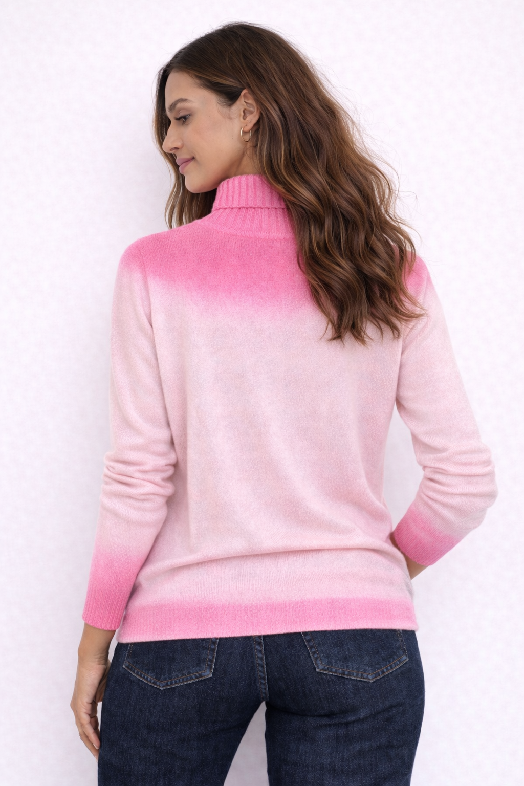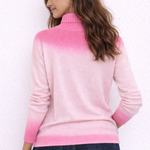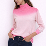 كنزة واسعة من ماركة Absolute Cashmere الفرنسية. بياقة مدورة وأكمام طويلة من نسيج مضلع عريض. فتحات جانبية. لون وردي فاتح يتدرج إلى الوردي. الخامة: 100% كشمير.