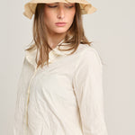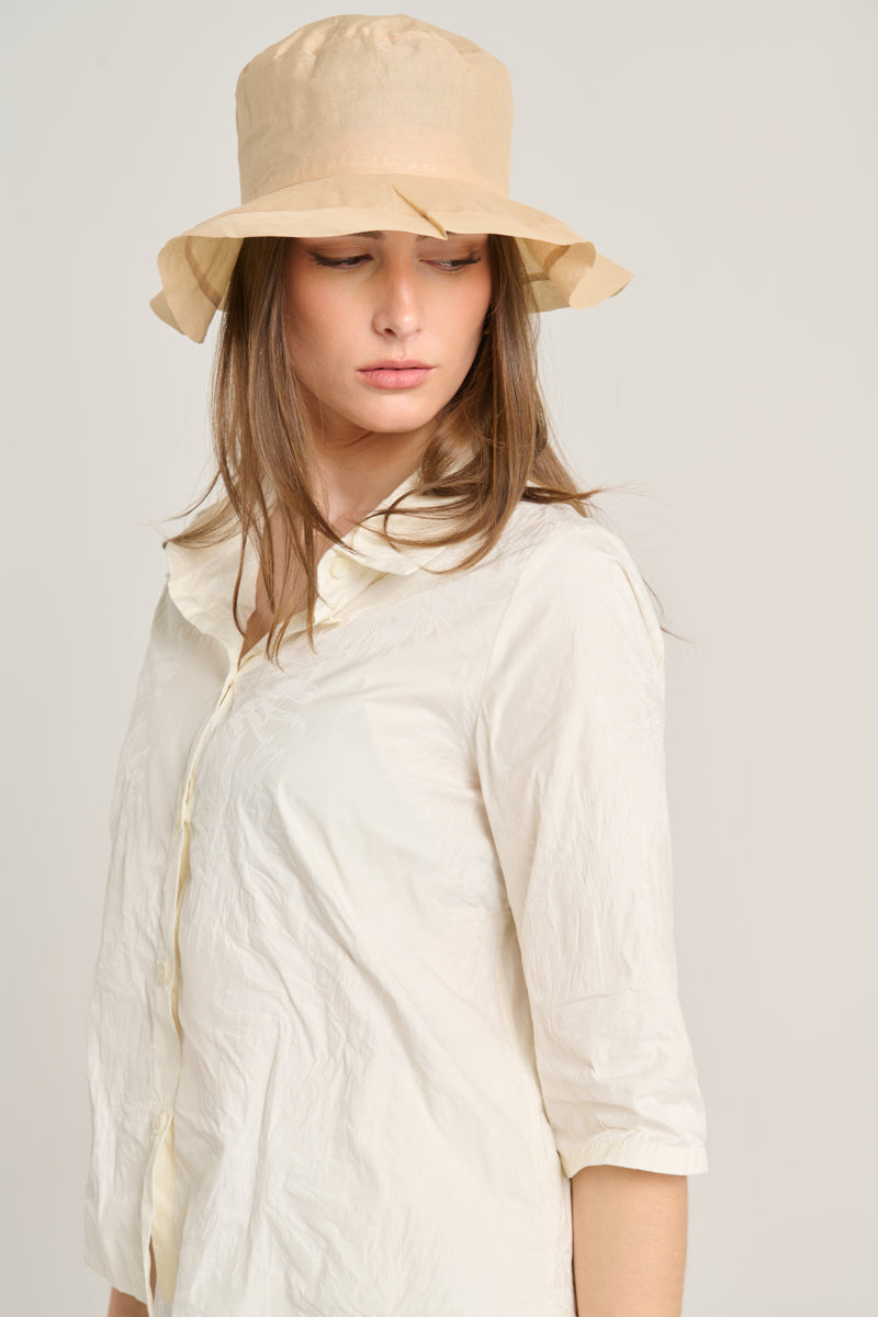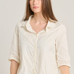 قميص من قماش تقني بأكمام ثلاثة أرباع وبدون أساور. ياقة قميص وإغلاق بأزرار متناسقة. لون كريمي بنقشة زهور دمشقية. التركيب: 100% بوليستر. لا يُنصح بكيّ هذا القماش. المقاسات ألمانية. صنع في ألمانيا.