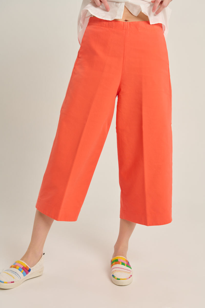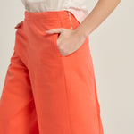 بنطال واسع الساقين بتصميم الموزة، بلون المرجان. إغلاق بسحاب جانبي. جيوب جانبية وغطاء خلفي. التركيب: 96% قطن، 4% إيلاستين.