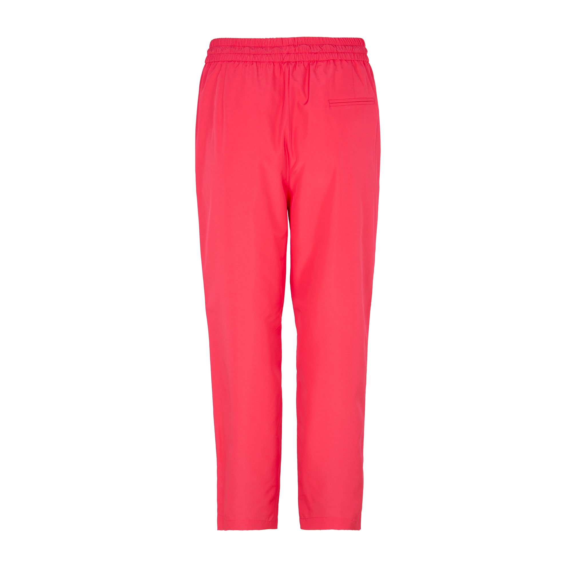بنطال فضفاض من قماش تقني بلون الفراولة، مزود بجيوب جانبية، وحزام خصر مطاطي، ورباط للإغلاق. الخامة: 100% بوليستر. المقاسات إيطالية. صنع في إيطاليا.