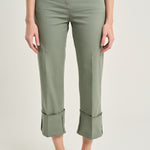 بنطال كاكي بخصر عالٍ وخمسة جيوب. حافة عريضة بتفاصيل ممزقة. التركيب: 97% قطن، 3% إيلاستين. المقاسات إيطالية.