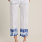 بنطال تشينو قصير من قماش التويل المطاطي. تصميم قصير باللون الأبيض مع حافة زرقاء مصبوغة بتقنية التاي داي. الخامة: 98% قطن، 2% إيلاستين. إغلاق بأزرار مرصعة. صنع في إيطاليا.