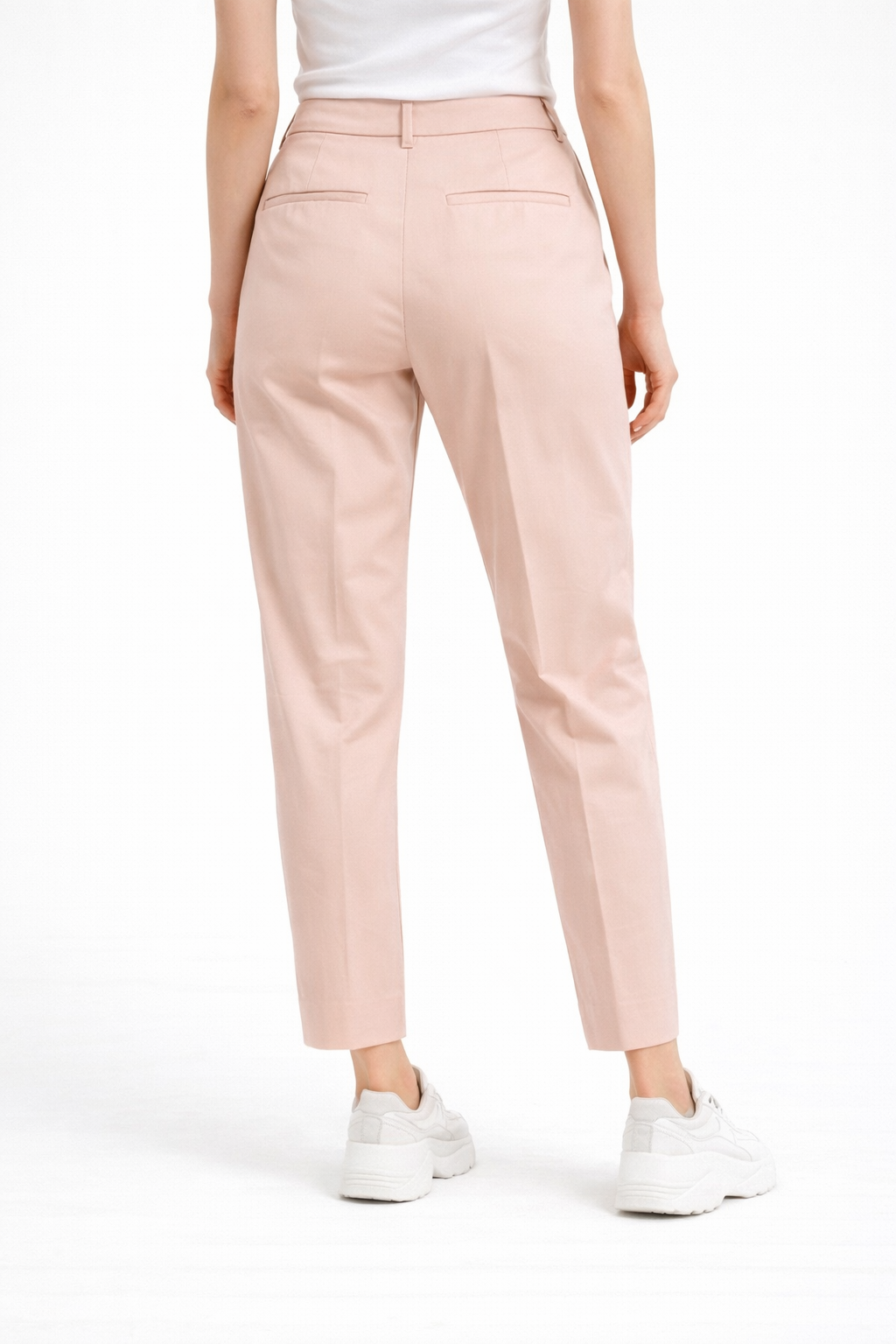 Pantalón de corte recto en color rosa empolvado. Cintura de media alta y trabillas para cinturón. Bolsillos laterales y cremallera frontal. Composición: 95% algodón, 5% elastán. Tallaje italiano.