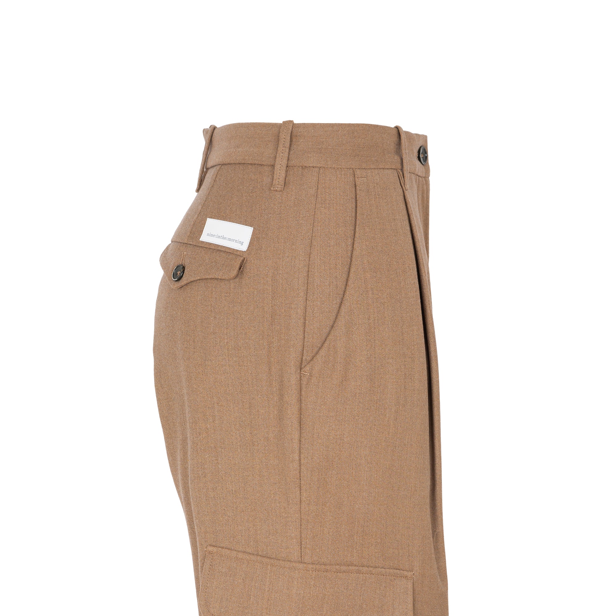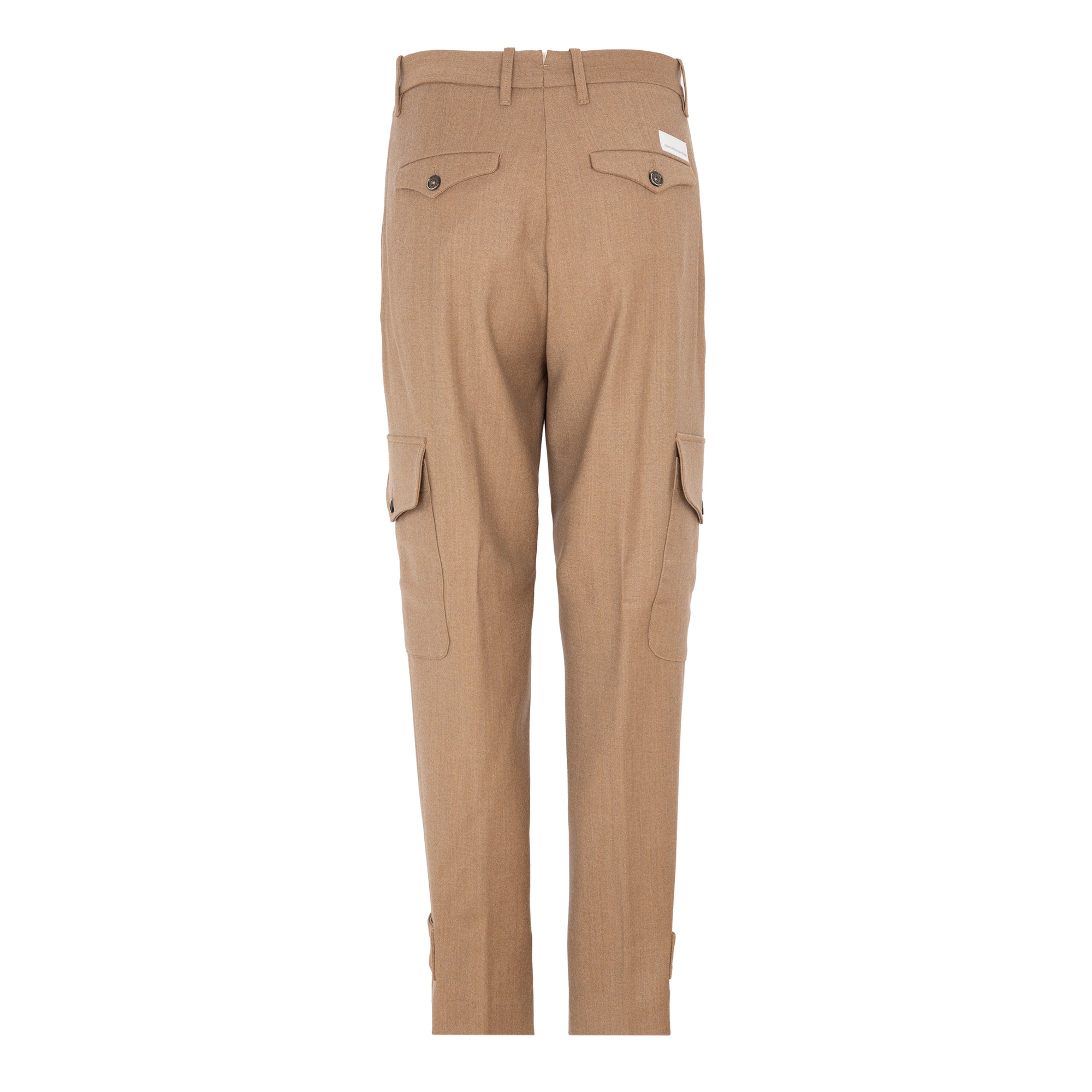 بنطال كارغو بلون الجمل من ماركة ناين إن ذا مورنينغ الإيطالية. يتميز بجيوب أمامية وخلفية، وجيوب كبيرة عند الركبة مزودة بأغطية وأزرار. خصر مرتفع مع زر وسحاب للإغلاق. حلقة زر عند الحافة. التركيب: 65% صوف، 15% فيسكوز، 15% بوليستر، 5% إيلاستين. متوفر بمقاسات مختلفة. صنع في إيطاليا.