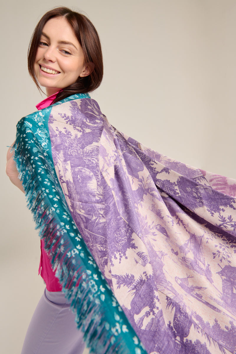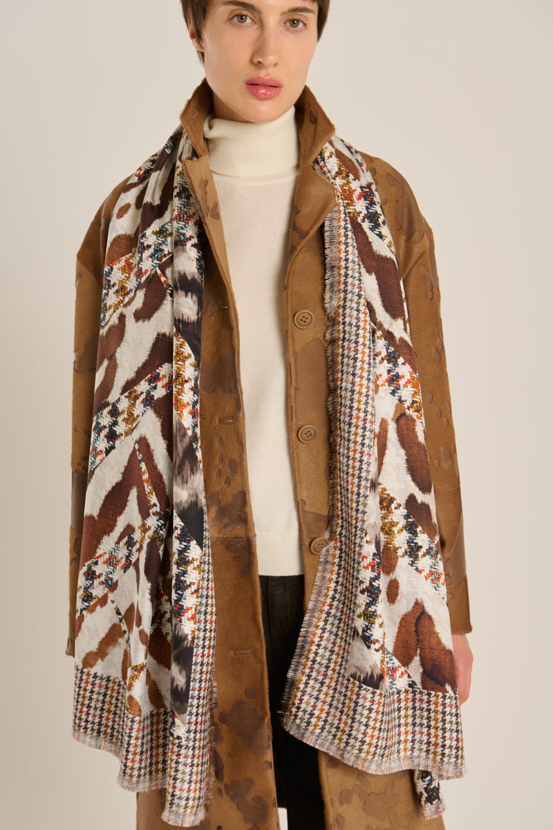 La combinación de colores y tejidos hacen de este peculiar estampador que sus pañuelos sean exclusivos e inconfundibles.