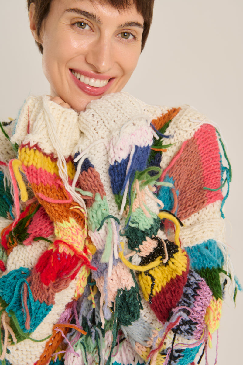 Las prendas, en su mayoría creadas a partir de un elaborado trabajo de patchwork, se caracterizan por la combinación electica de colores y pieles.