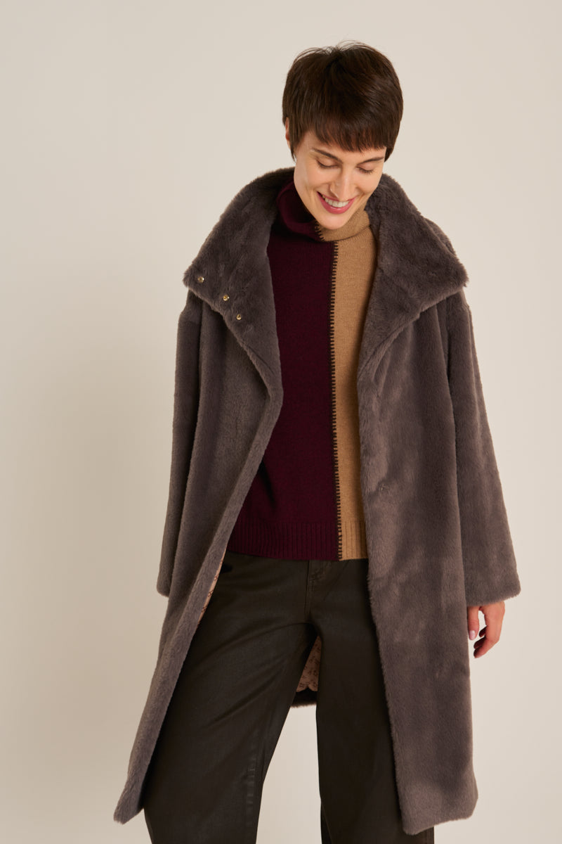 Su fuerte son los diseños de exterior –abrigos, chaquetones y gabardinas.