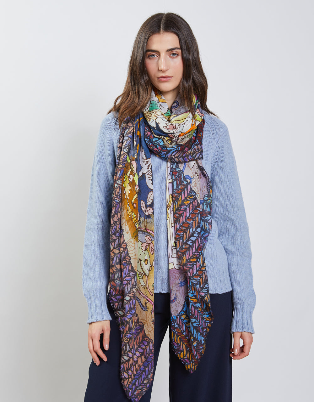Blazers, maxi-levitas, vestidos, camisetas, pantalones y los especiales pañuelos mezclados de cashmere y seda serigrafiada, son sus prendas destacadas en cada colección. ¡Experimenta la pasión por los tejidos y los colores!