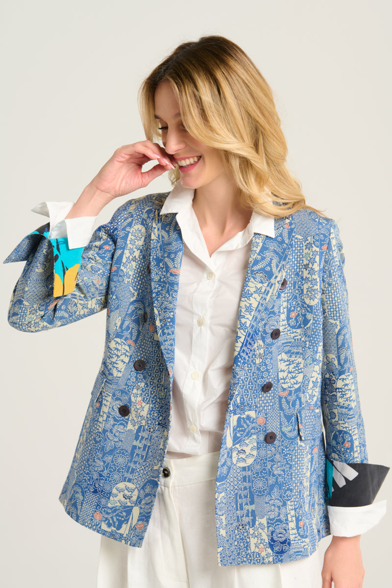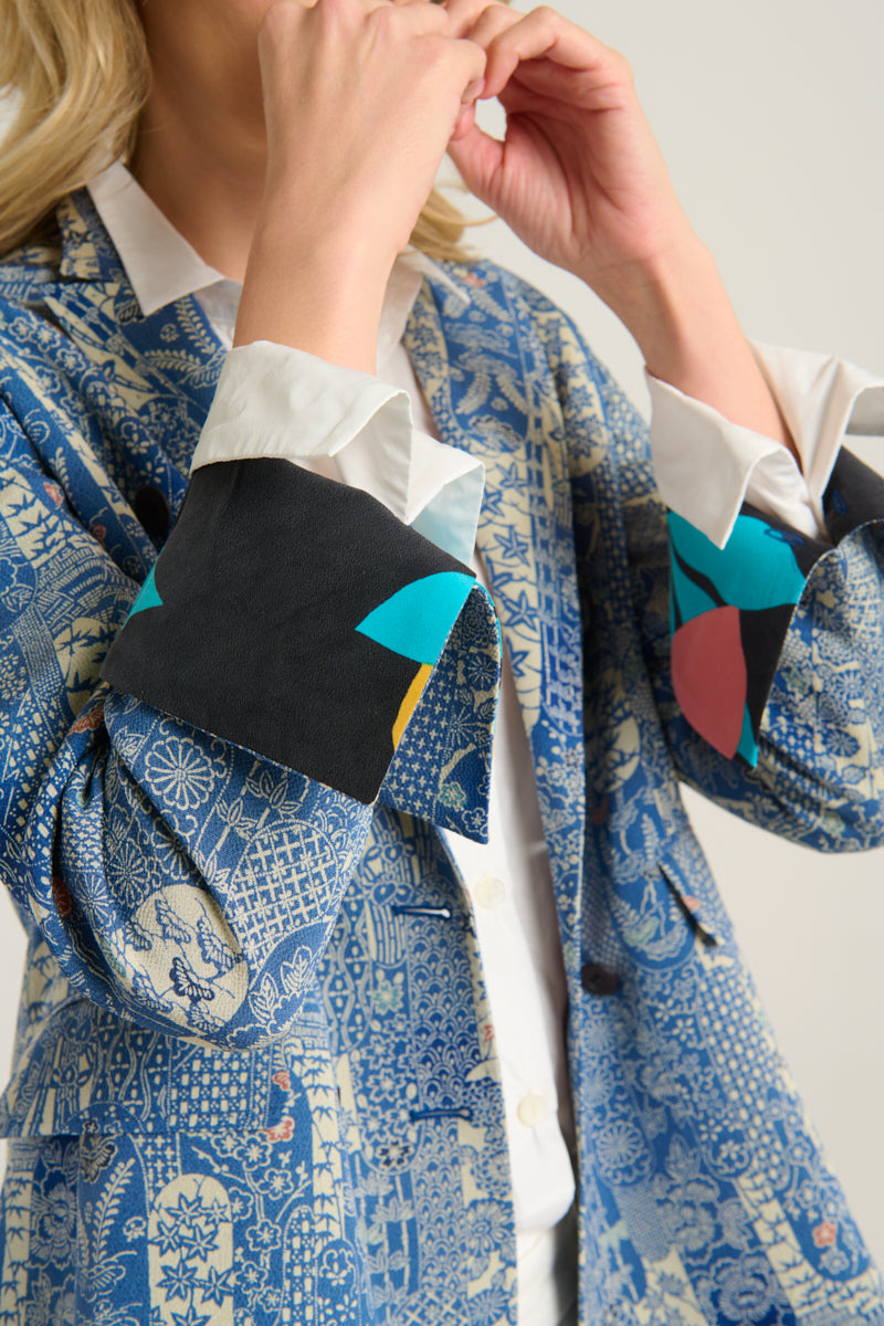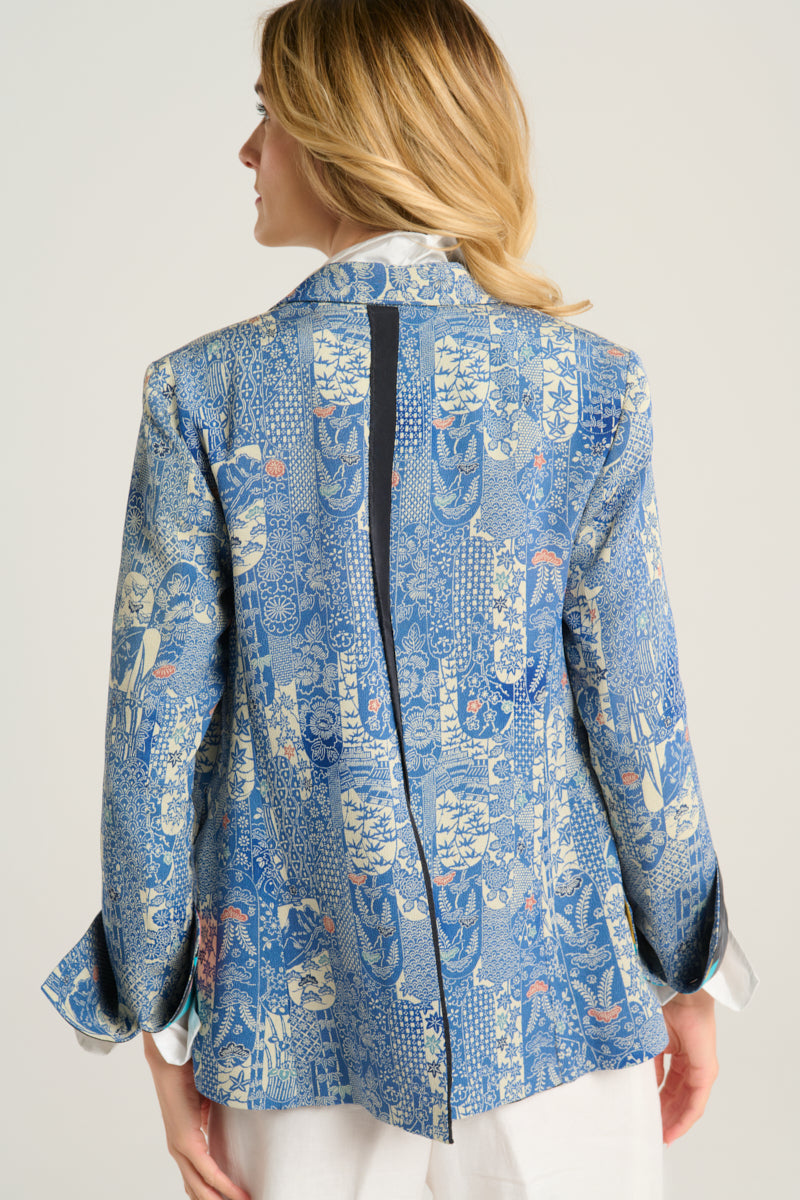 blue batik kimono blazer