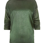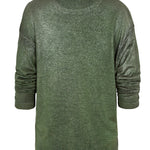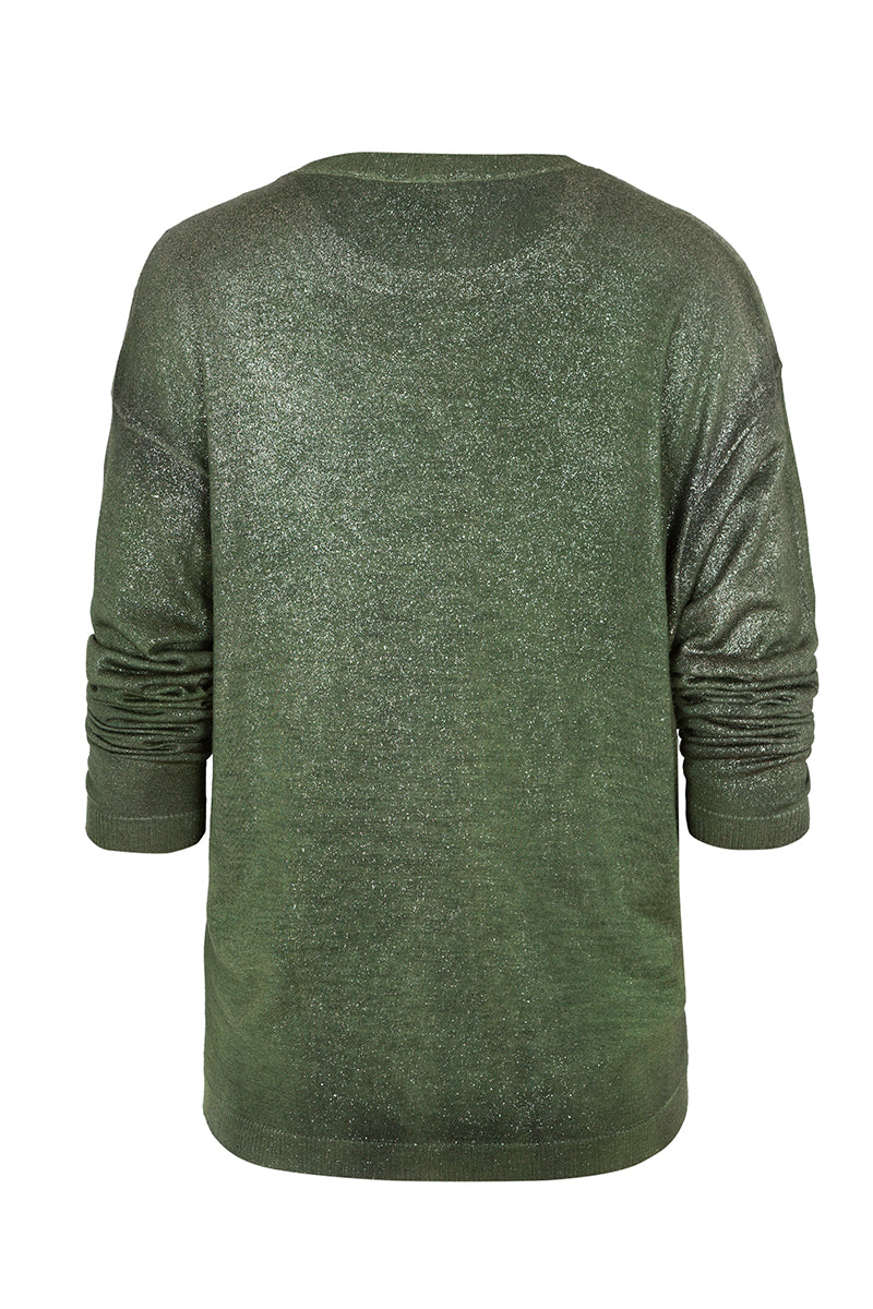Round neck sweater, long sleeves, and oversized cut, from the Italian brand Avan Toi. Back and sleeves in knit and front part in silver lurex silk in forest green color. Front composition: 94% Silk, 6% elastane, Back composition: 70% Cashmere, 30% Silk. Made in Italy. Italian sizing.