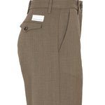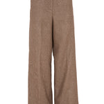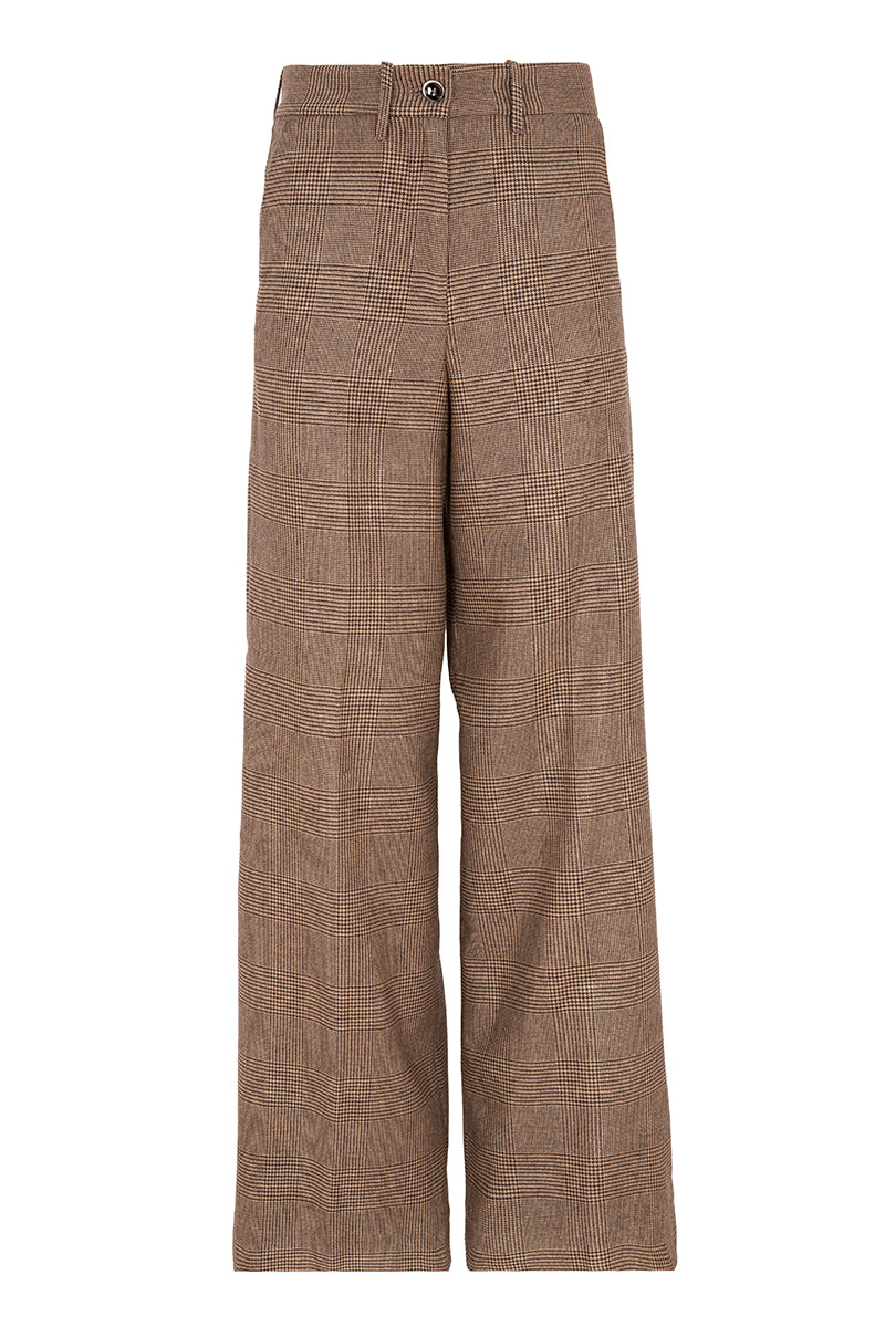 Pants by Nine in the morning, featuring a high waist and straight leg cut. Two side front pockets and two back pockets with button closure. Waistband with belt loops. Prince of Wales check pattern in sand and brown. Composition: 55% virgin wool, 30% silk, 15% cashmere. Made in Italy. Italian sizing.