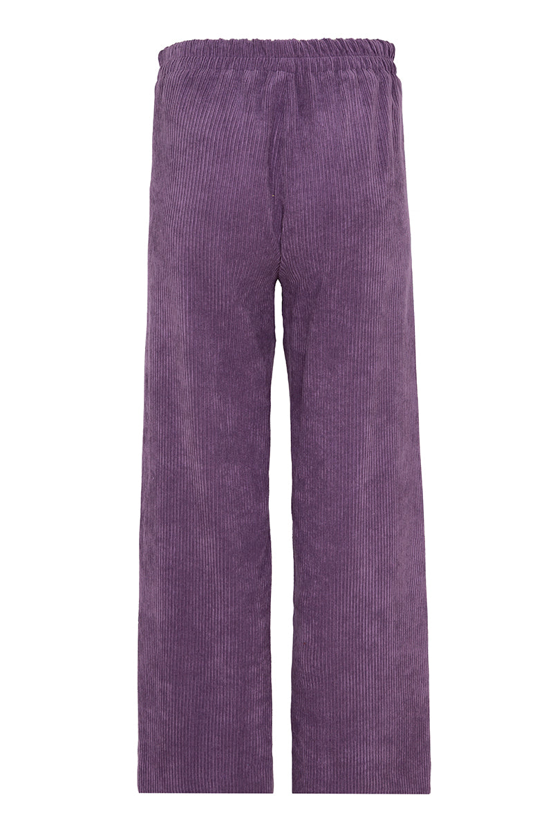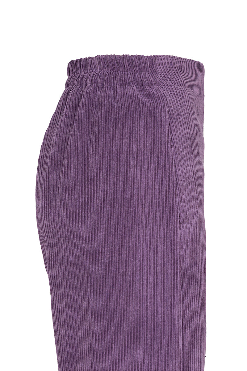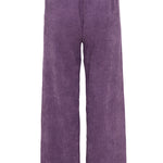 Pants from the Italian brand Via Masini 80, made of fluid corduroy in amethyst color. Wide straight leg, elastic waistband at the back, and side pockets. Composition: 87% Polyester, 11% Nylon, 2% Elastane. Made in Italy. Italian sizing.