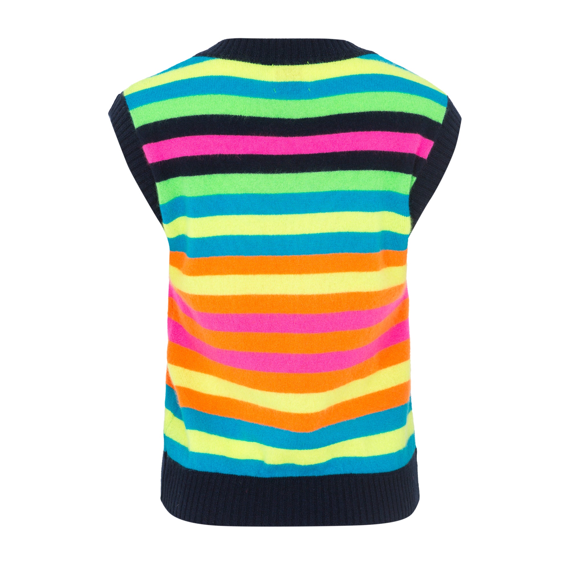 Multicolor striped vest from Brodie Cashmere. V-neck and stripes in fluorescent tones. Composition: 100% Cashmere.