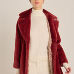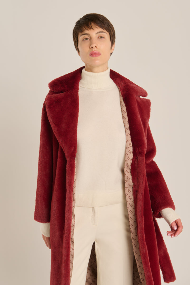 Abrigo eco fur, de la marca Herno. Cierre con cinturón y automáticos, forrados al tono. Largo midi y bolsillos invisibles. Color burdeos. Composición: 100% poliéster. Tallaje italiano. Ref: CA000586D 12422-6705.