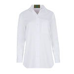 White cotton shirt, slightly oversized with pocket on the front. Green upholstery tape detail on the back. Composition: 100% Cotton. Made in Spain.