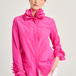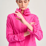 Technological fabric shirt in fuchsia color, matching buttons and long sleeves. Lechuguilla collar detail and waterfall effect cuffs. This fabric cannot be ironed. Composition: 100% Polyester. German sizing.