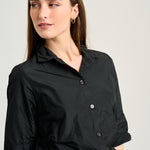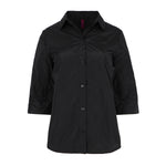 Straight-cut, technofabric shirt with a shirt collar, matching buttons, and 3/4-length sleeves. Black. Composition: 100% Polyester. This fabric cannot be ironed. German sizing.
