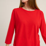 Red cotton T-shirt with a crew neck and 3/4-length sleeves. Dropped shoulders and a flowing pattern. Composition: 100% cotton. Italian sizing. Made in Italy.