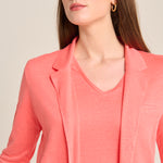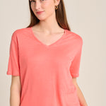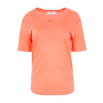 Coral-toned T-shirt from the French brand Not Shy. V-neck, straight cut, and short sleeves. It comes with a matching jacket. Made from 100% linen.