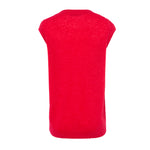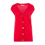 Maliparmi plain-knit open vest in strawberry. Lightweight, super-soft alpaca wool yarn. Composition: 46% Nylon, 39% Merino wool, 15% Alpaca. Italian sizing.