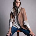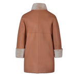 Spanish lambskin jacket with a nappa leather finish. Three-quarter sleeves, a collar with magnetic closure, reversible and two-tone in snow and nude. Tortoiseshell clip button. 100% Spanish lamb.
