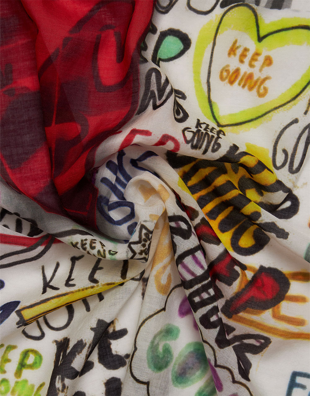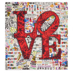 Scarf from the Italian house Faliero Sarti with a multicolored letter print on a white background and the word “LOVE” in red, in the center. Measurements: 130x 145. Composition: 57% modal, 37% cotton,6% cashmere . Made in Italy.