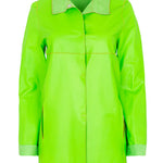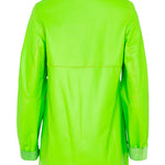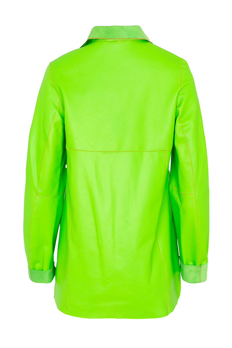 Spanish lambskin jacket finished in nappa, with a shirt collar. Lime green color and orange thread detail. Snap button closure. Composition: 100% Spanish lamb. Made in Spain.