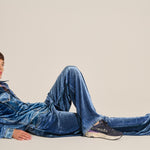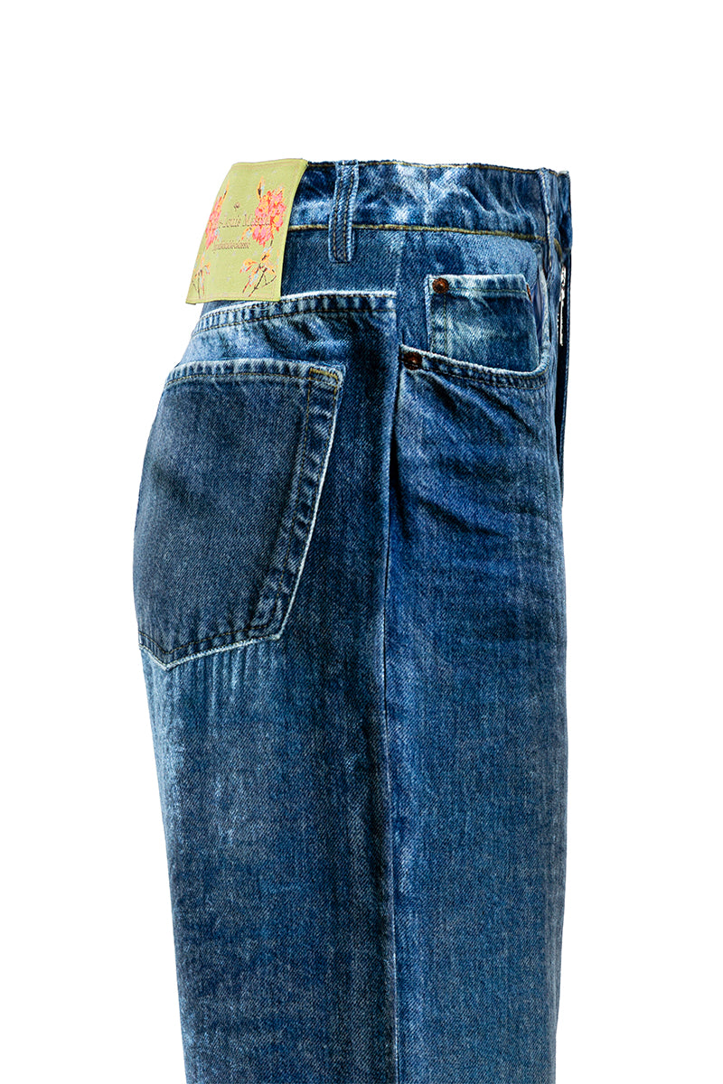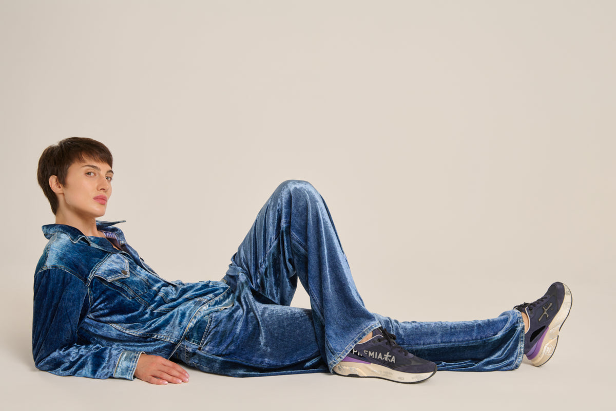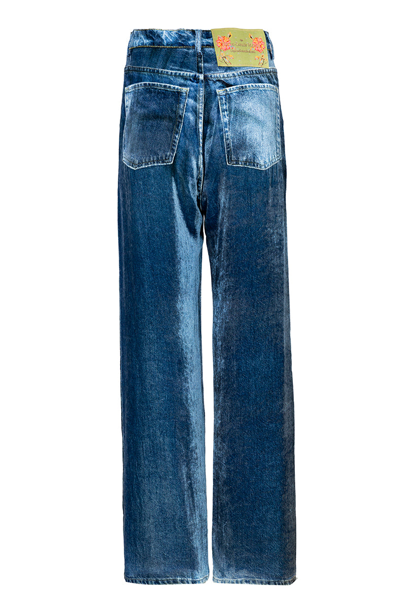 5-pocket velvet pants with a worn denim effect. Composition: 82% viscose 18% silk. Made in Italy. Italian sizing.