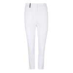 High-waisted pants in white piqué, zipper closure, front welt pockets and hem with side slits. Composition: 97% Cotton, 3% elastane. Italian sizing.