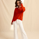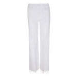 Wide-leg high-waisted jeans, “roller fray” model, white. Front closure with buttons and fringed hem. Composition: 94% Cotton, 4% Polyester, 2% Elastane. American sizing.