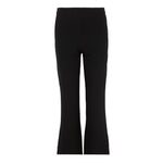 High-waisted flared cropped trousers by Maliparmi, in black. Side pockets and zipper closure, waistband lined with aubergine-colored grossgrain. Composition: 88% Polyester, 12% Elastane. Italian sizing.