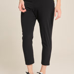 Slim-fit trousers with an elastic waistband made of tech fabric. Black. Composition: 100% Polyester. German sizing.