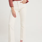 High-waisted, high-rise, flared jeans, ecru. Front zipper closure and double front pocket detail. High rise weekender skimp model. Composition: 94% Cotton, 4% Polyester, 2% Elastane. American sizing.