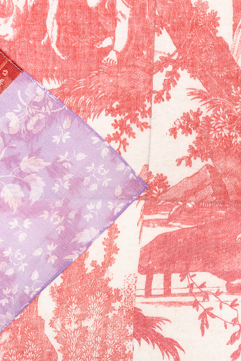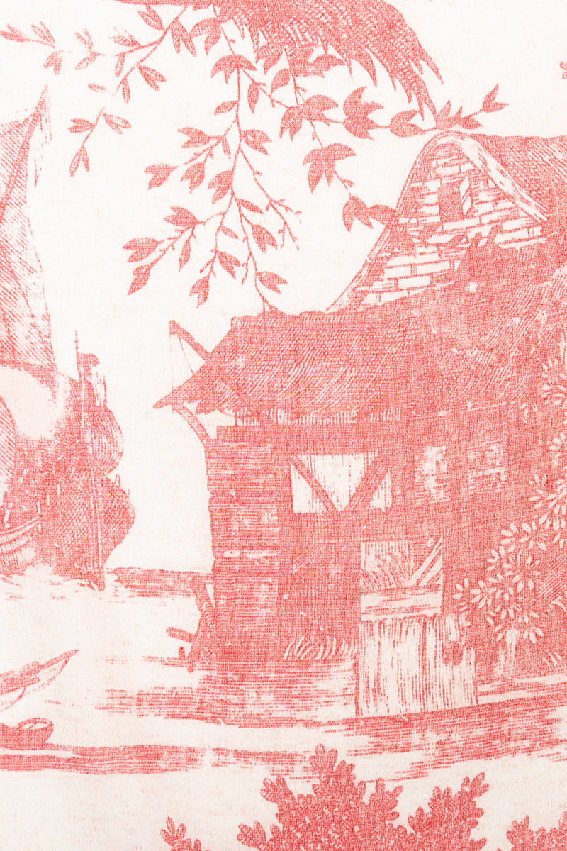 Pierre-Louis Mascia scarf. Toile de Jouy print in garnet and purple tones. Composition: 73% cotton, 27% silk. Size: 135 x 190 cm. Made in Italy.