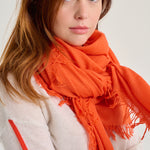 Scarf from the Italian brand Faliero Sarti. Orange Lella model. Made in Italy. Composition: 70% virgin wool, 30% silk. Measurements: 155 X 162
