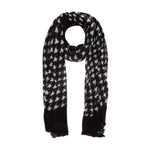 Scarf from the Italian brand Faliero Sarti. Sondra model, black and white houndstooth print. Vintage finish. Made in Italy. Composition: 55% Cashmere, 45% Nylon. Measurements: 65x180.