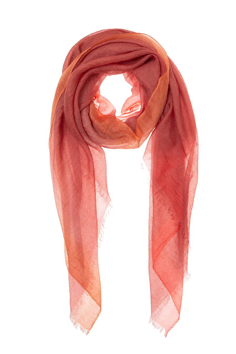 Gradient scarf in warm tones. Composition: 100% cashmere. Measurements: 100x200. Made in Nepal.