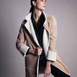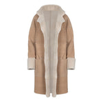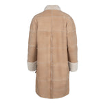 Off-white shaved mink fur coat, unstructured with a high lapel and reversible, finished in sand.