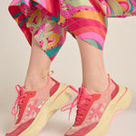 Hill sneaker, version 7504. Pink checkered nylon upper with matching logo and suede heel counter. Pink cotton laces. Extra-comfortable sole.