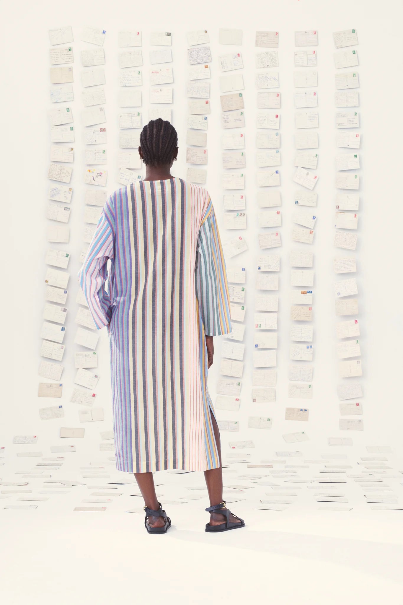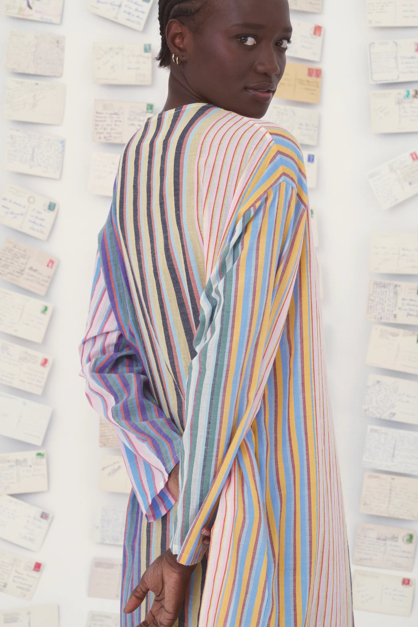 Hecho de voile de algodón , el vestido Kea celebra las rayas bayadera, como un recuerdo de los mercados provenzales. Composición: 100% Algodón. Hceho a mano en la India.