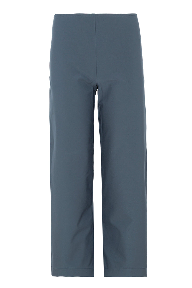 Pantalón recto con cinturilla elástica de tejido tecnológico. Color azul grisaceo. Composición: 100% Poliéster. Tallaje alemán.