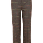 Pantalón de la marca italiana Via Masini 80, estilo chino, en paño. Color marrón con rayas en teja, coral y pistacho formando cuadros. Pernera recta, bolsillos laterales y traseros de hojal con botón. Cierre con cremallera y botón al tono. Composición: 74% lana virgen ,24% poliamida, 2% elastán. Hecho en Italia. Tallaje italiano.