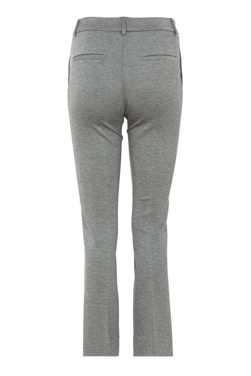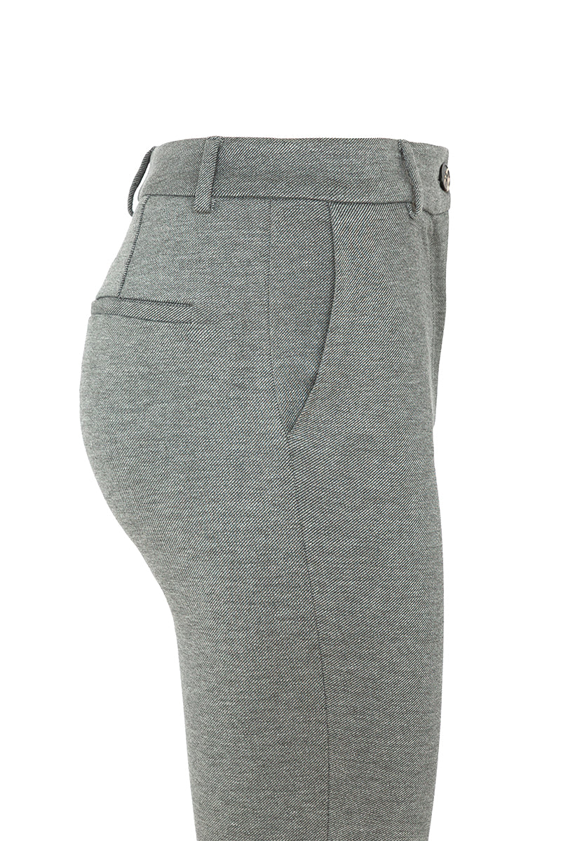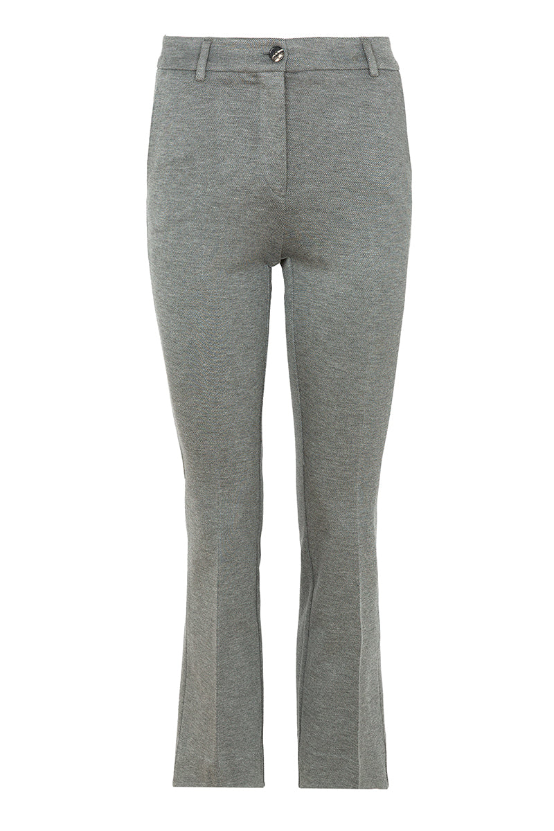 Pantalón de la marca italiana Via Masini 80, en tejido canvas, de tiro medio alto y ligeramente acampanado en color gris aluminio. Bolsillos laterales. Composición: 71% Viscosa, 25% Poliamide,4% elastán. Hecho en Italia. Tallaje italiano