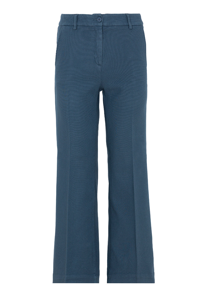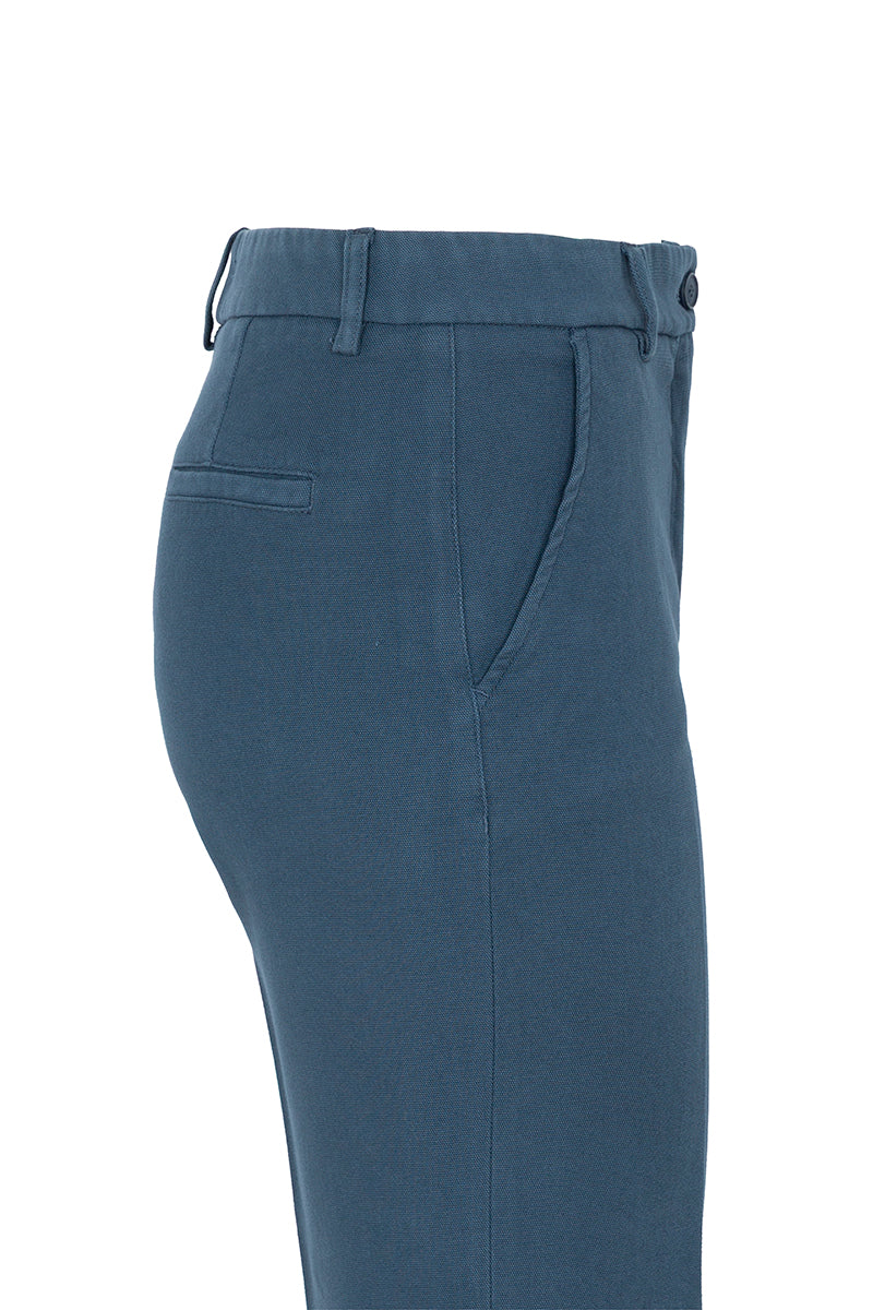 Pantalón de la marca italiana Via Masini 80, estilo chino en canvas. Extraconfort , pernera ancha y ligeramente* trompeta ,en color azul índigo. Bolsillos laterales y traseros de hojal. Composición: 97% algodón ,3% elastán. Hecho en Italia. Tallaje italiano.