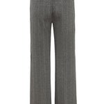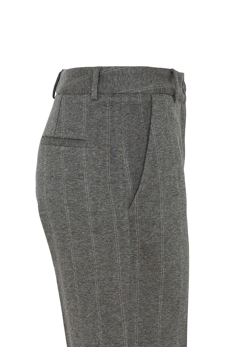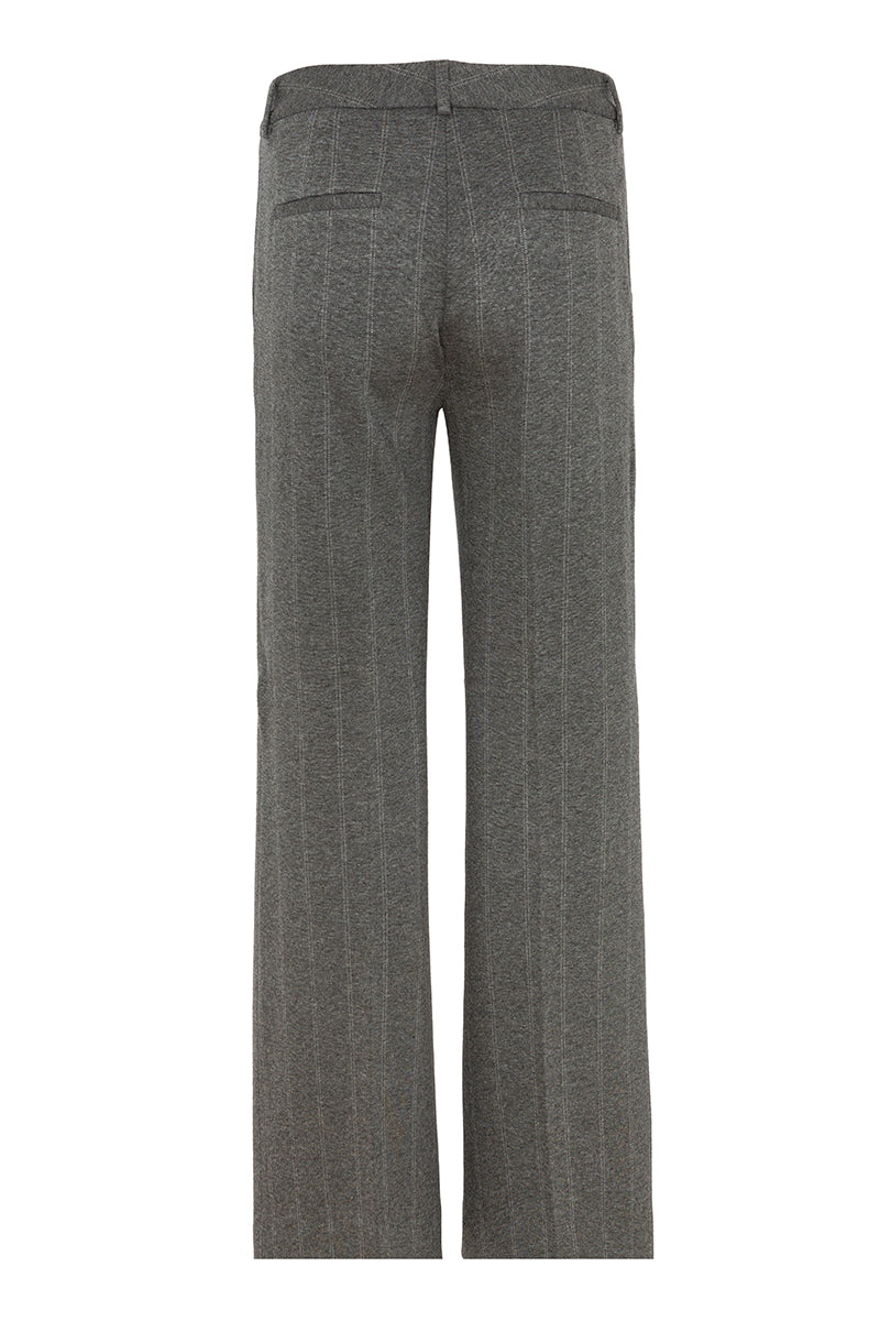 Pantalón de la marca italiana Via Masini 80, estilo chino en punto extraconfort. Pernera ancha y ligeramente trompeta, en color gris con raya diplomática. Bolsillos laterales y traseros de hojal. Cierre con cremallera y botón al tono. Composición: 76% viscosa ,21% poliamida, 3% elastán. Hecho en Italia. Tallaje italiano.